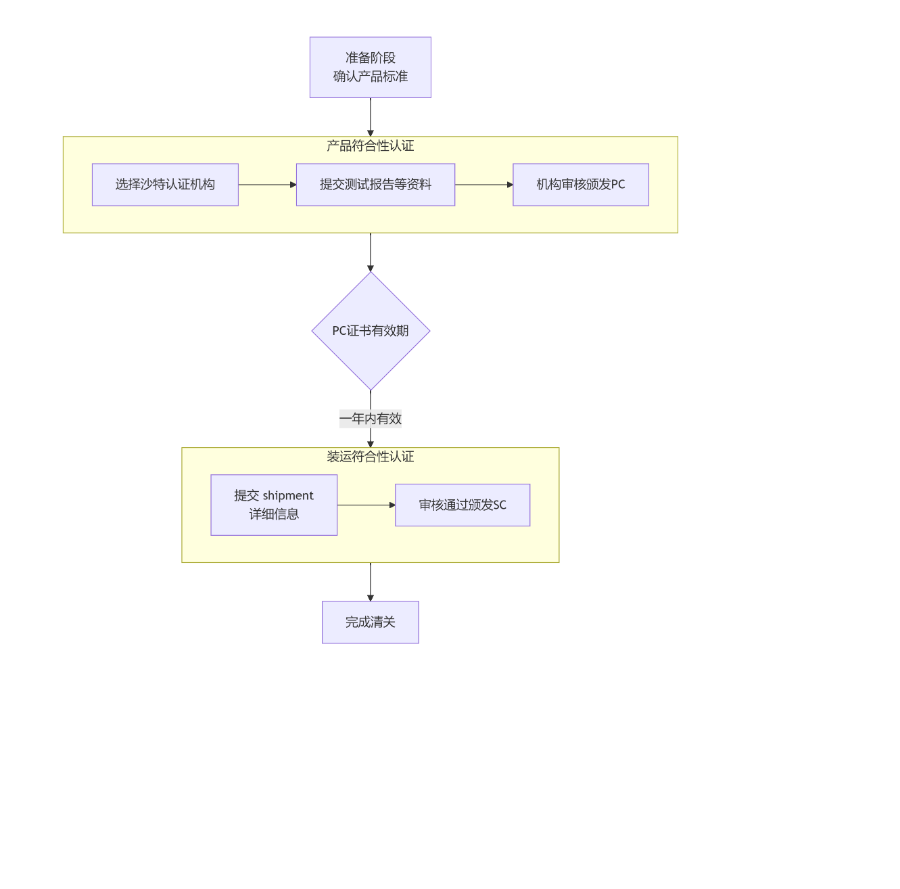 | 认证阶段 | 1. 送样检测,获取报告 2. 在SABER平台申请PC证书 3. 与沙特进口商保持沟通 | 获得有效期一年的PC证书 | 选择靠谱代理,确保测试报告有效,PC证书信息准确。 |